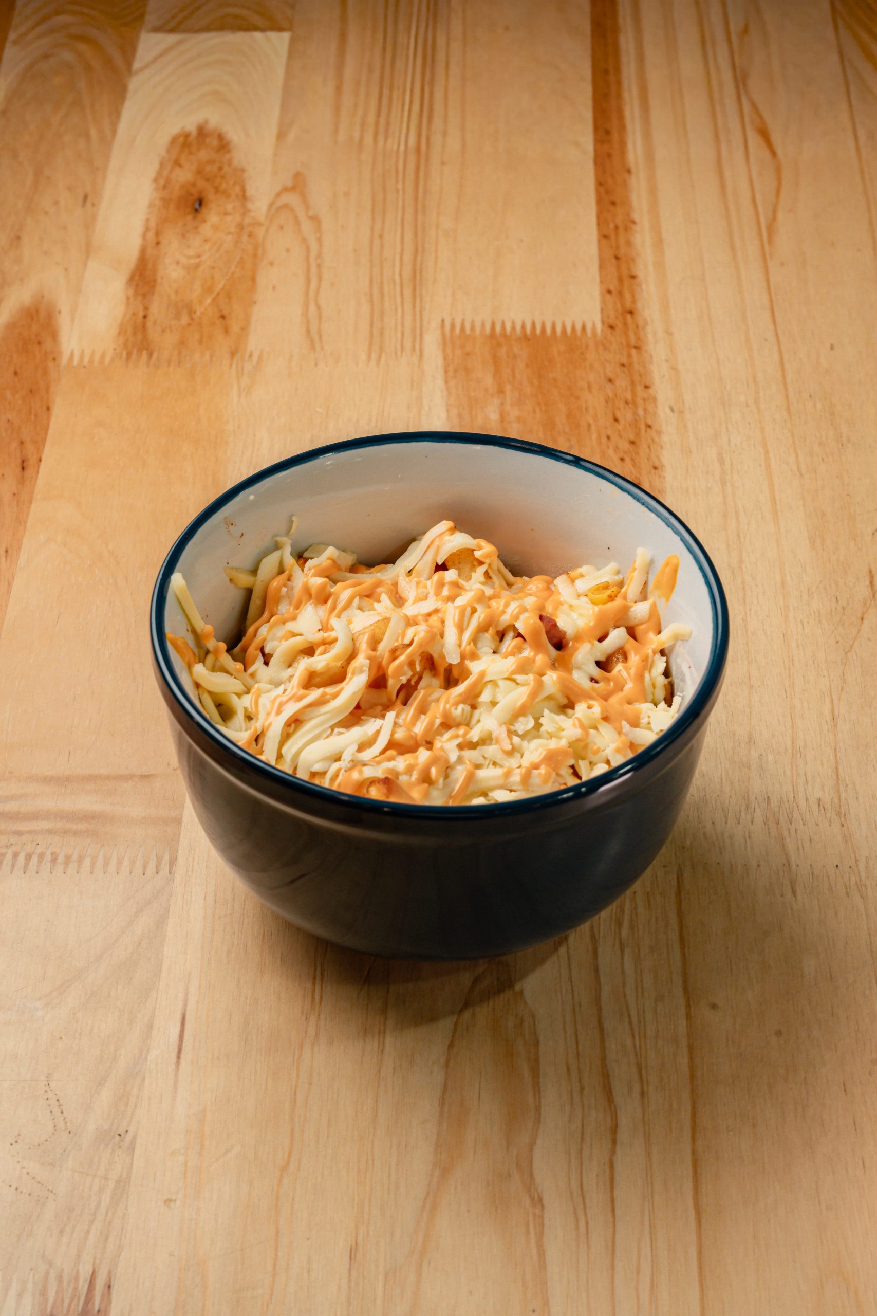 Deleita tu paladar con una deliciosa papa a la francesa y salchicha fritas, acompañadas de tocineta, maiz tierno, papa ripio, salsa chedal cubienta con una capa de queso doble crema.