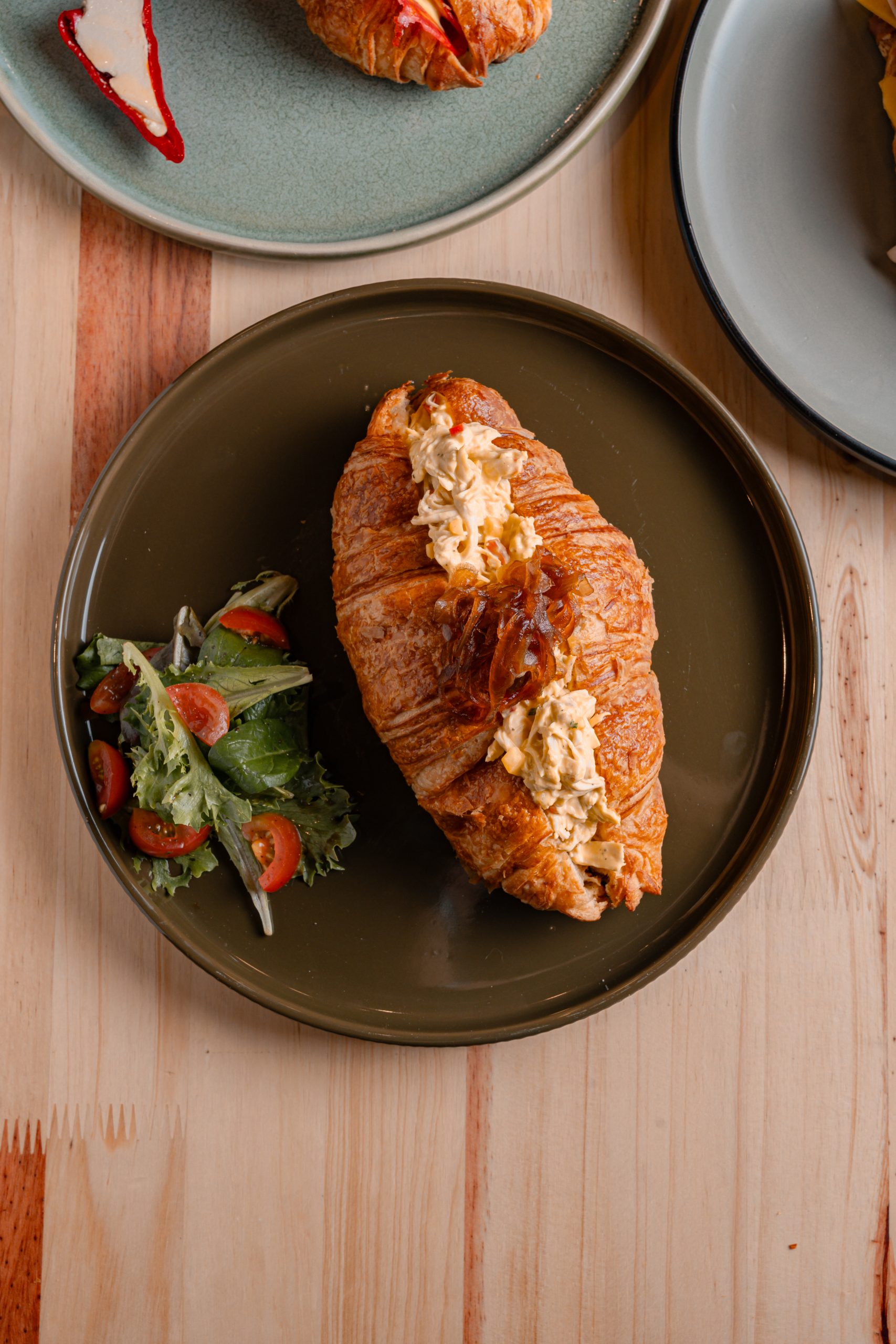 Croissant especial de la casa, ensalada de atún en salsa mataqui con manzana verde, acompañado de una mini ensalada de la huerta.